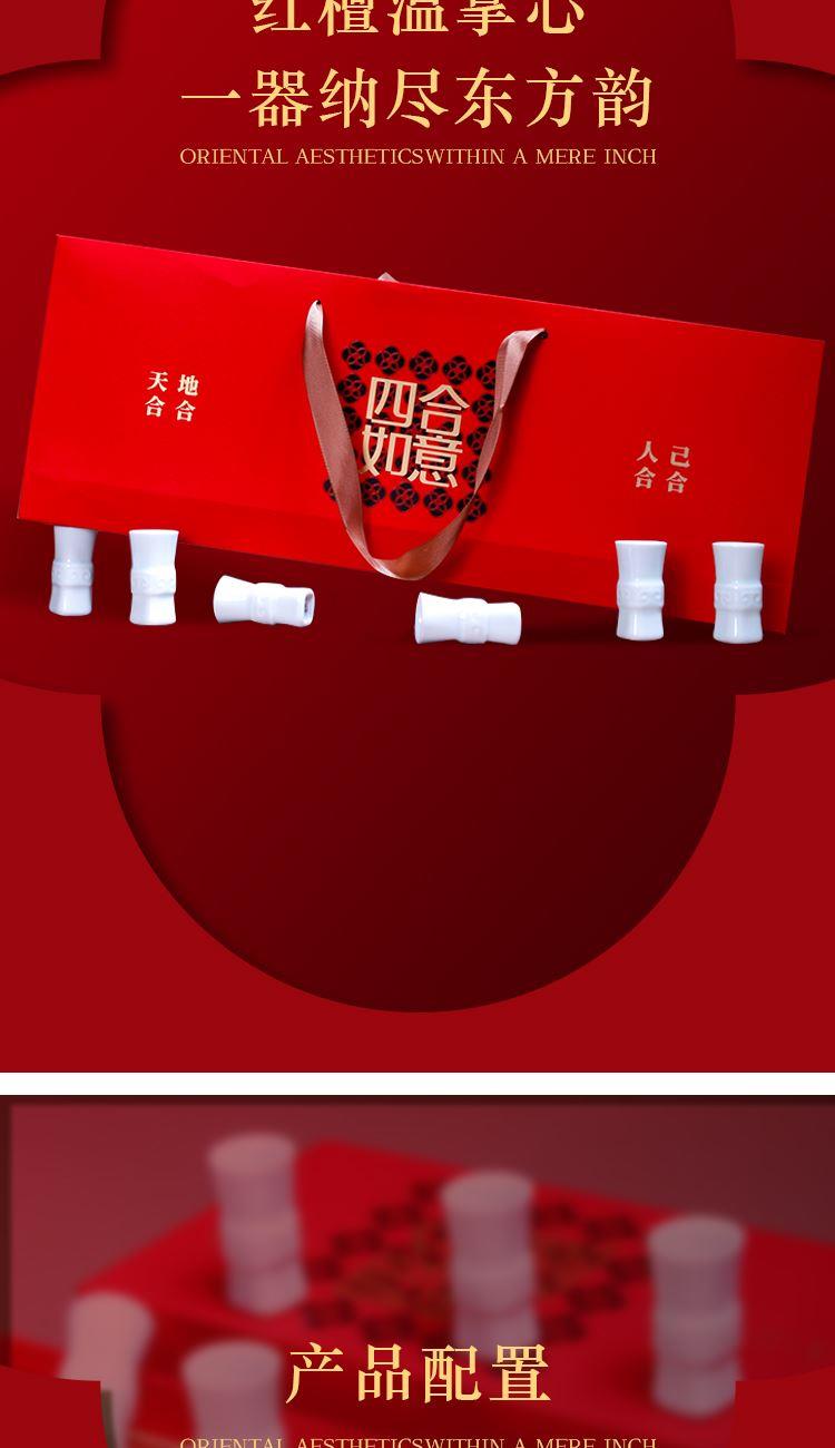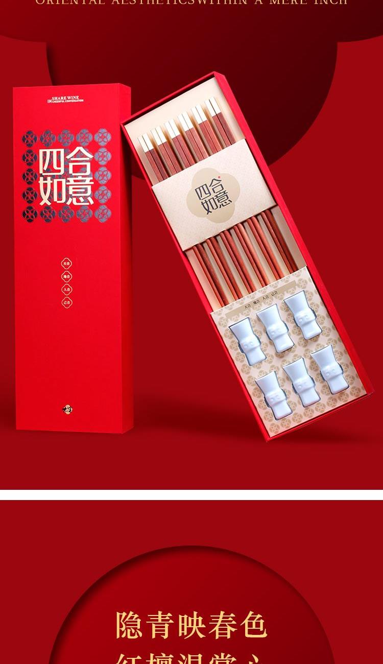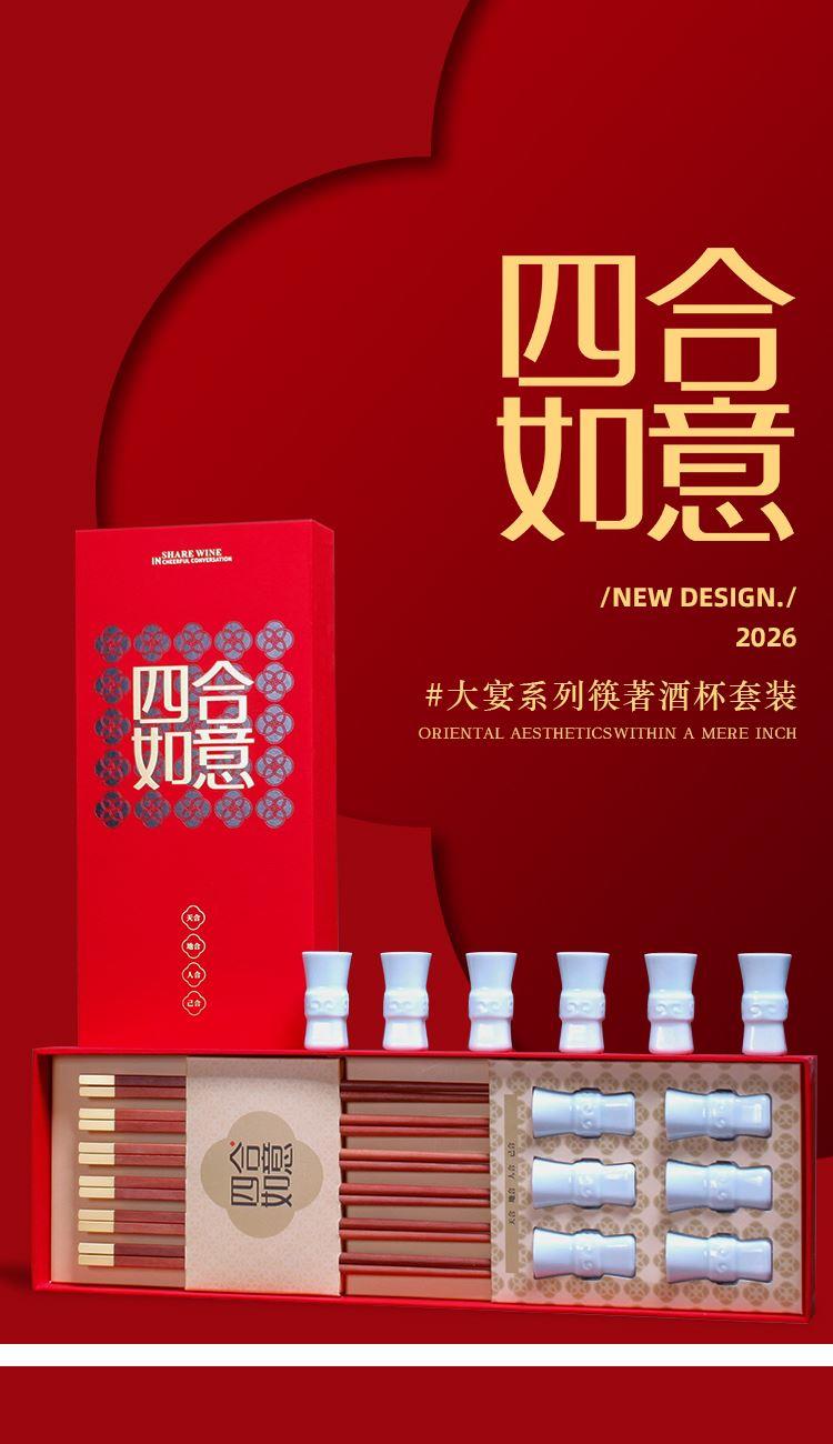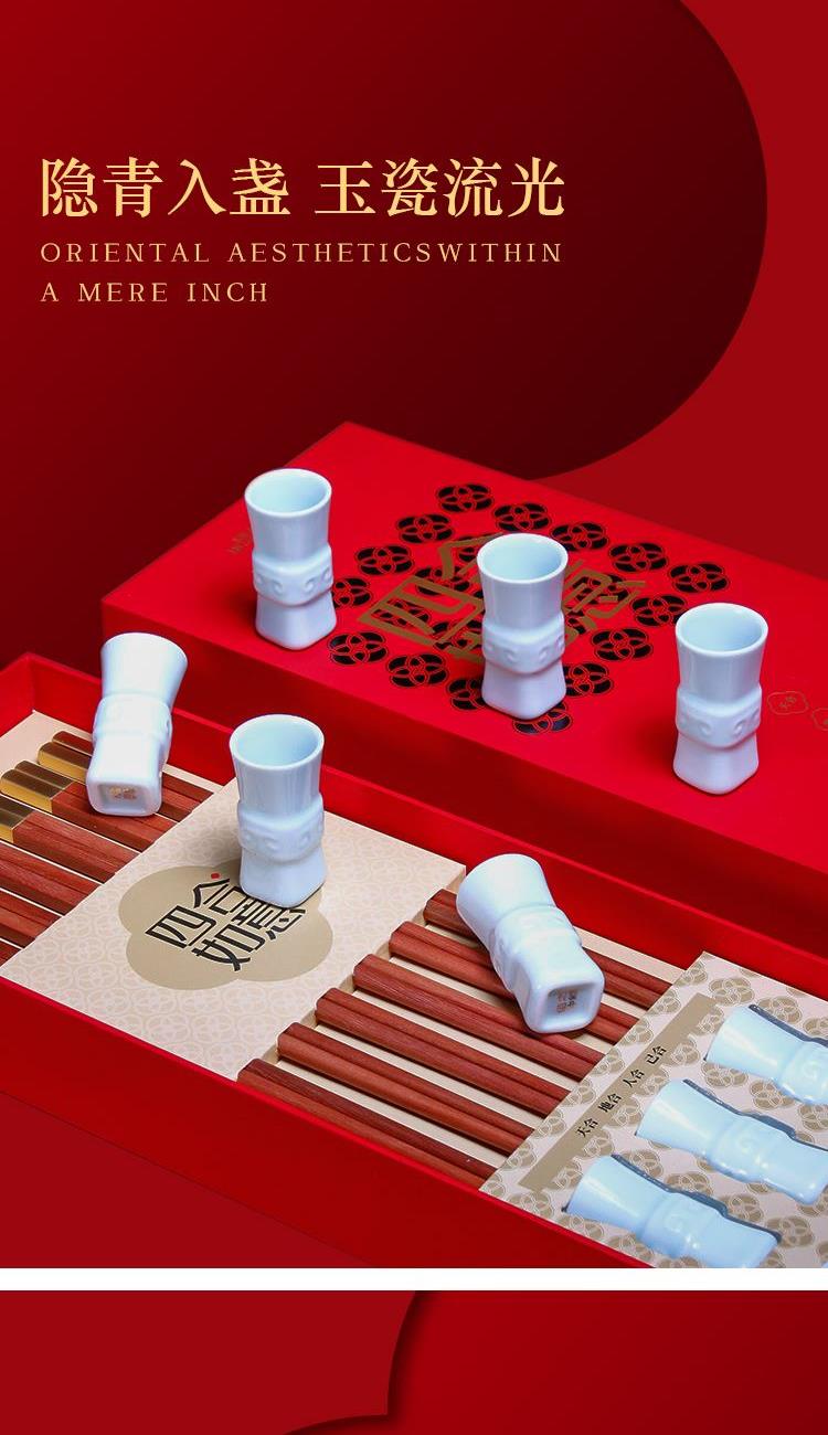 青錦大宴系列【四合如意】禮盒紅檀木筷6雙玉瓷隱青釉酒杯6只 禮品已成功加入PPT!